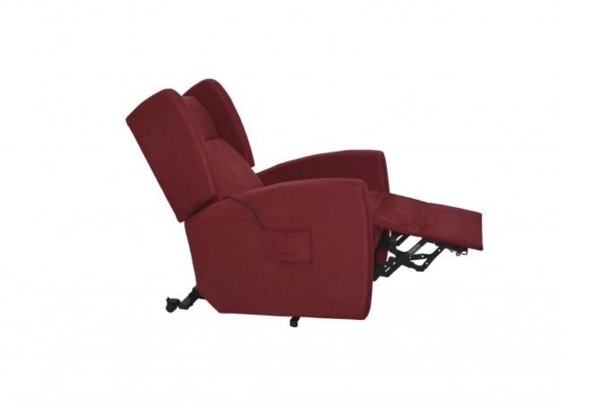 El sofá Douro existe en versión 1 motor que permite levantar el reposapies y reclinar el respaldo en un único movimiento simultáneo, en Microfibra Camel y Rojo rubí y en Polipiel Chocolate. y gris pardo.